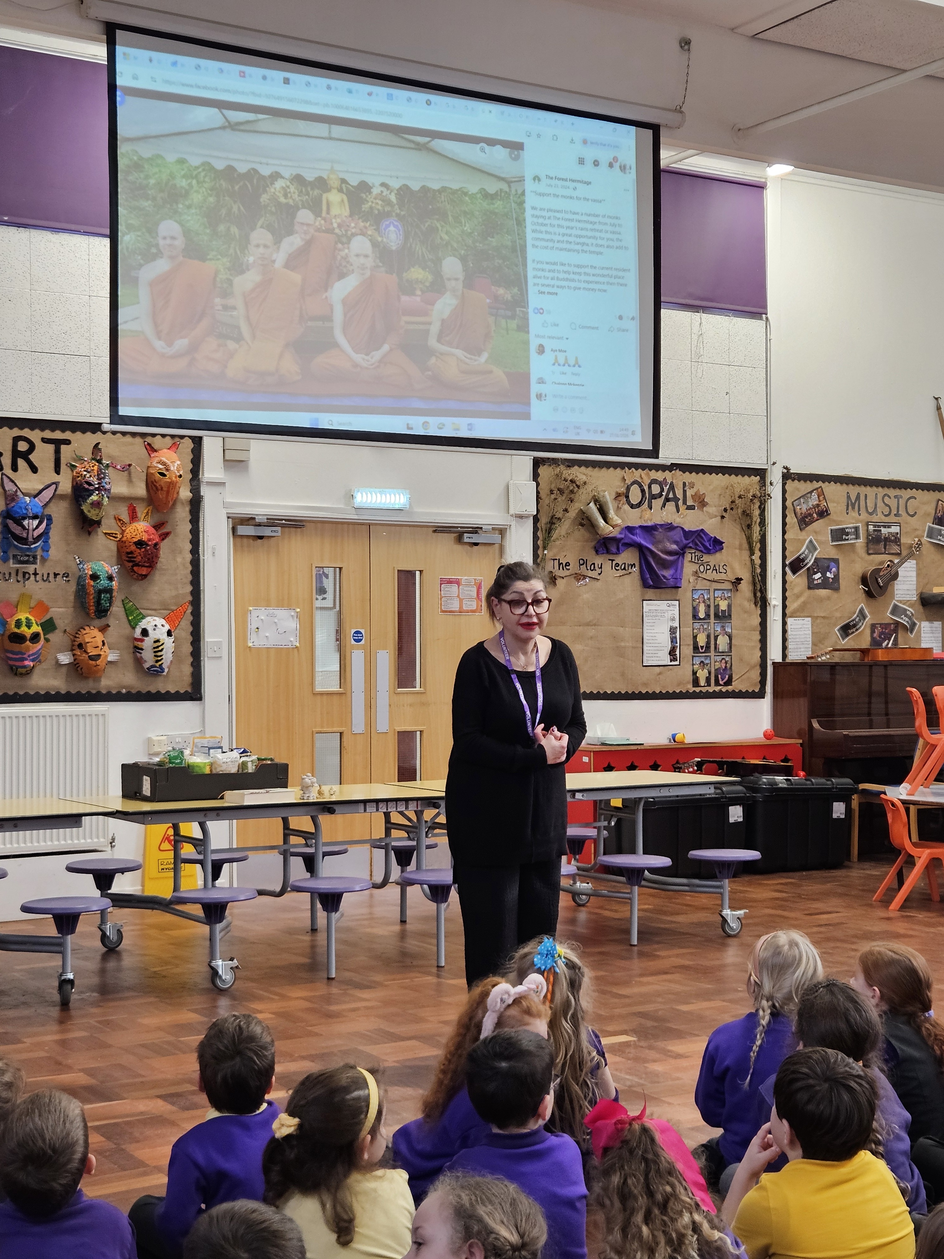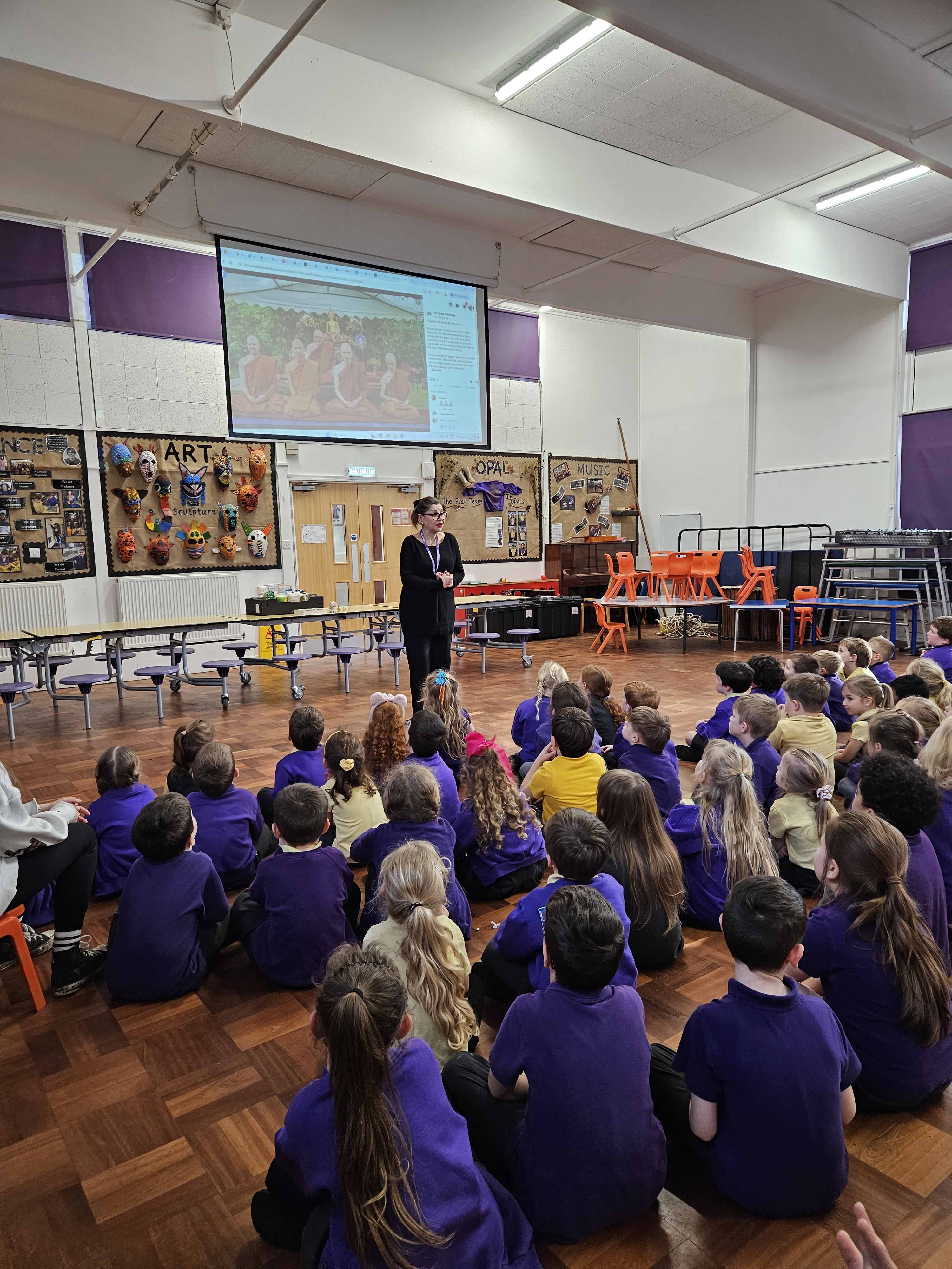 Today we welcommed Assa, our Buddhist speaker, into our school for an assembly. Assa spoke to the children about the origins of the Buddha, how he was born a prince and after seeking to witness death, old age and sickness, he was able to obtain enlightenment. She spoke about where she is taught about Buddhism, and explained that the monks who teach her wear one piece of cloth which is long enought to wrap around their bodies to create clothing. Assa also bought with her, 3 different types of Buddha statues, all of which are similar but have slightly different strengths of meaning. She shows us how she greeted the Buddha, and some children related this to how Muslims pray, on the ground. She also invited everyone to join her in some meditation. The children asked lot of questions to help them to understand the reasons behind why she follows this worldview and Assa has even invited us to The Forest Hermitage to join in with a meditation session!