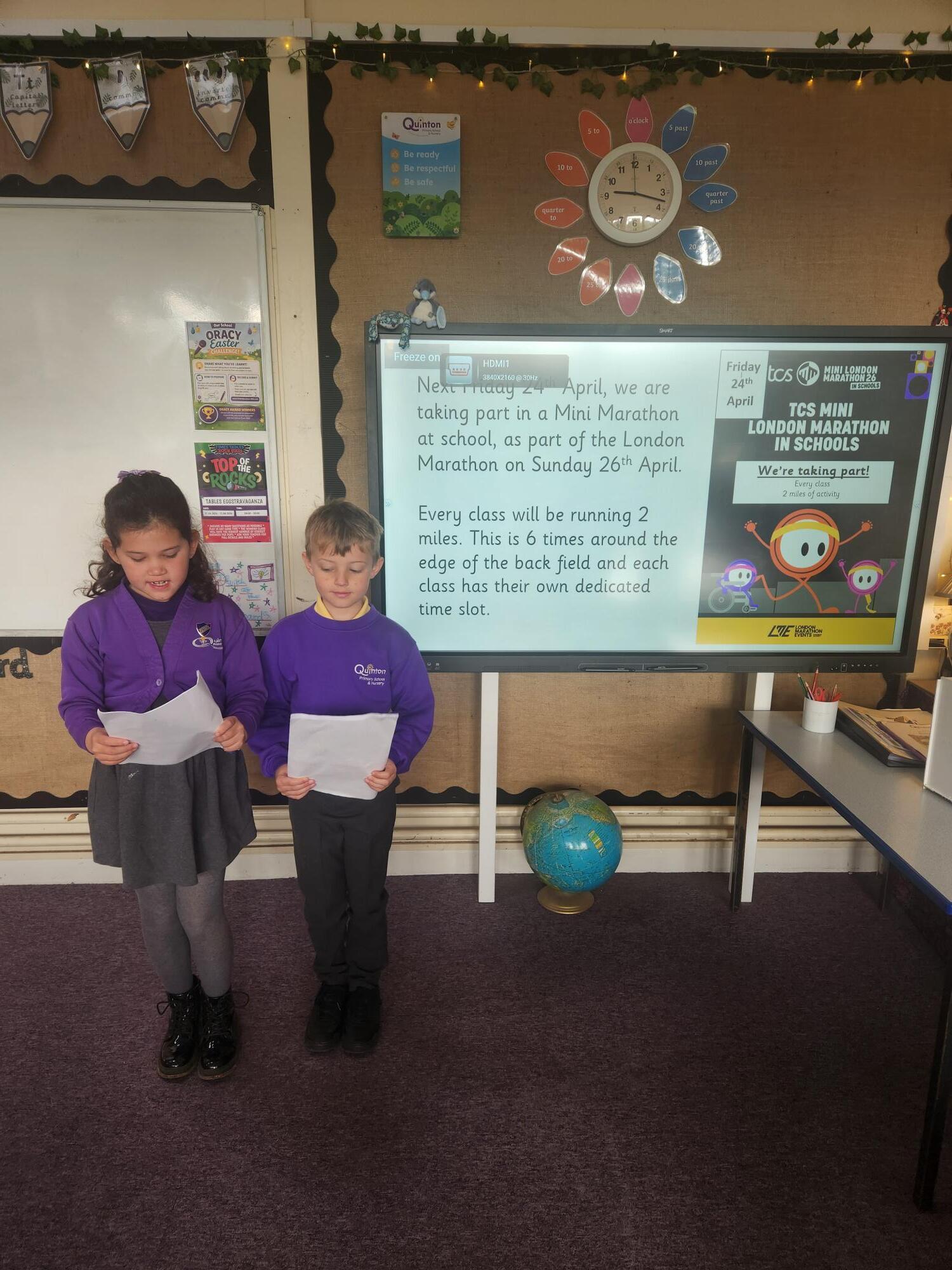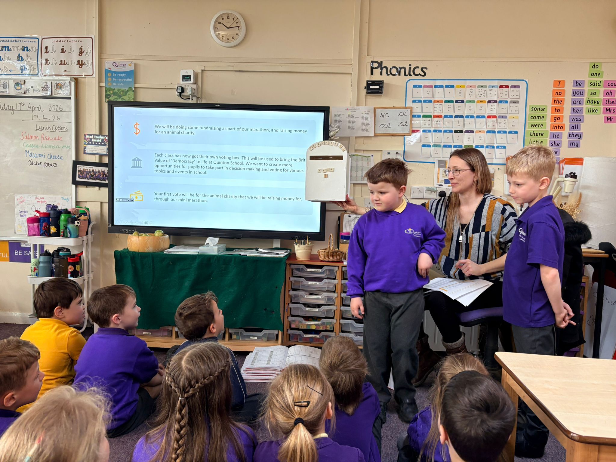 On Friday, the school councillors delivered a presentation to their classes on the details of the Mini marathon happening on this, Friday 24th April, along with information on the 3 charities that we could fundraise for. The children absolutely loved our new voting boxes and were so excited to be part of the voting process and being given a voice!